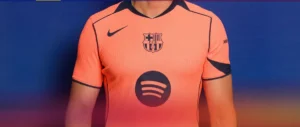 وتابع: “يتكامل القميص البرتقالي مع السروال والجوارب باللون ذاته، مع لمسات من الأزرق الداكن على هيئة خطوط عند الرقبة والظهر، إضافة إلى تفاصيل هندسية على الصدر يتوسطها شعار (سبوتيفاي)”.